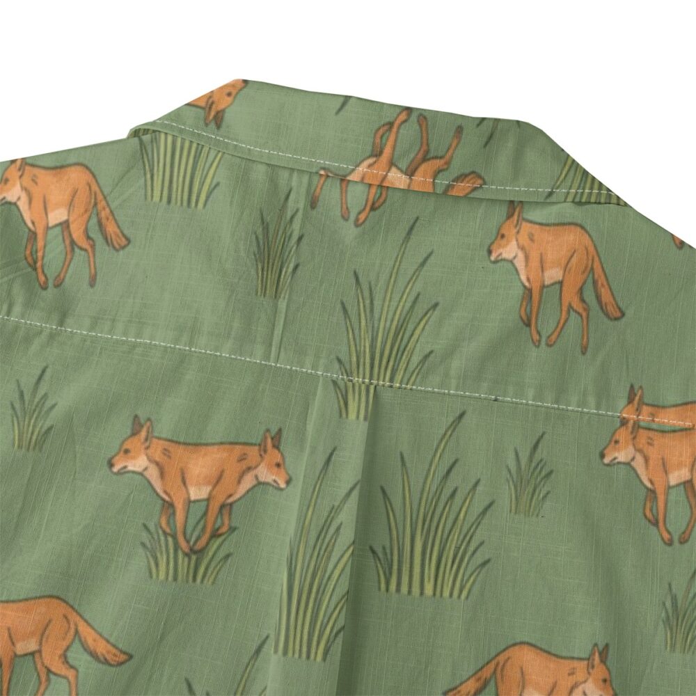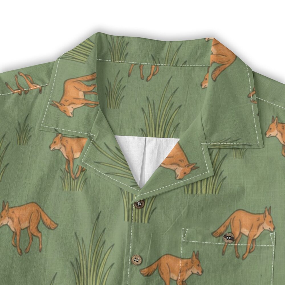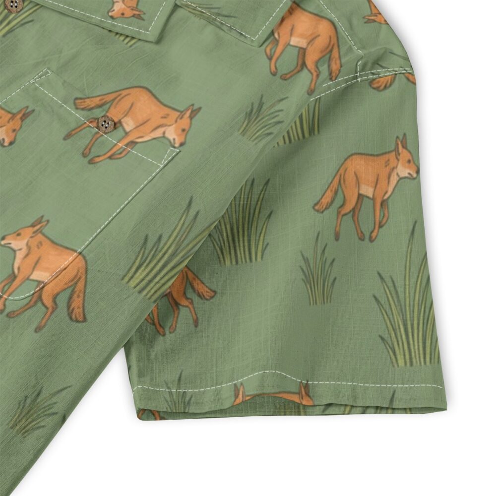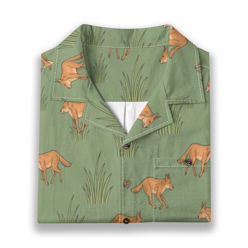 Energetic dholes move through soft grass shapes in a lively and balanced pattern. Natural greens create a fresh and grounded look.